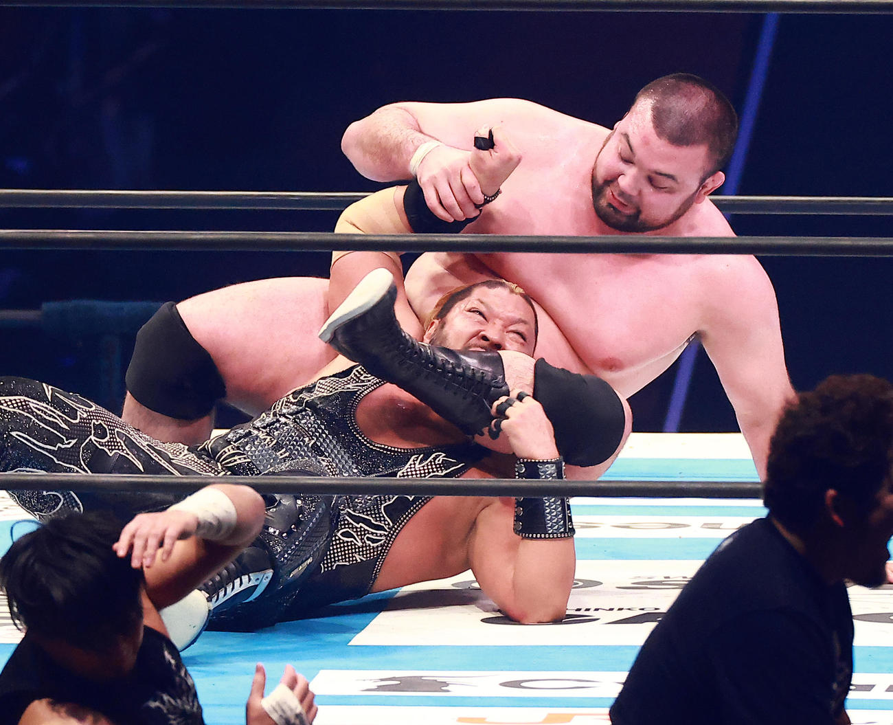 対戦相手は狡猾な試合運びで知られる**EVIL**。ウルフは柔道仕込みの体幹とパワーを前面に押し出し、組みの強さと重心の低さで主導権を握る。プロレス特有の駆け引きにも臆せず対応し、要所で観客の度肝を抜いた。