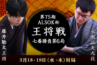 第75期王将戦七番勝負第6局が2026年3月18日から19日にかけて名古屋将棋対局場で行われ、藤井聡太王将が永瀬拓矢九段に勝利した。これによりシリーズ成績は3勝3敗のタイとなり、勝敗の行方は最終第7局へと持ち越された。今シリーズは序盤から永瀬九段がリードする展開が続いていたが、藤井王将が粘り強く巻き返しを見せ、白熱した戦いとなっている。