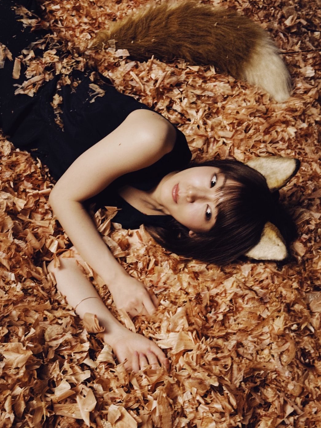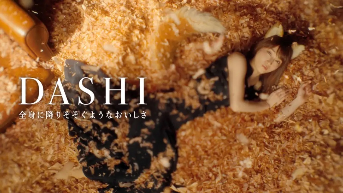 今作では、以前の素朴で可愛らしいイメージを一新。吉岡さんはシックな黒いドレスを身にまとい、どん兵衛の出汁に欠かせない「鰹節」に溺れるような幻想的なビジュアルを披露しています。大人の色香と妖艶さを漂わせるその姿は、見る者を一瞬で引き込む圧倒的なオーラを放っており、これまでにない新しい「どんぎつね像」を提示しています。